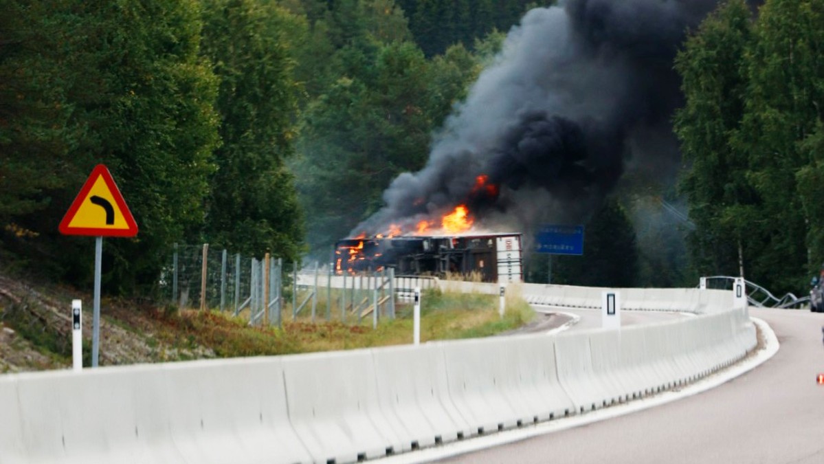 Lastbil I Brand Pa E4 Vagen Avstangd Gp